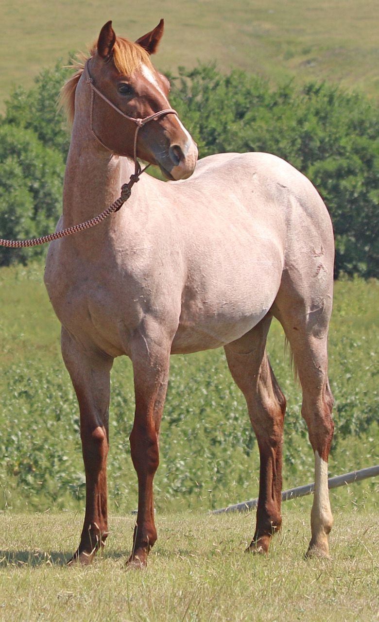 Striking strawberry roan filly is alert with tons of action and ability! She has a potent combination of Flit Bars in her lineage: proven sire Flit Bar Beggar and the ROM barrel mare Iza Flit Bar. With the addition of Frenchmans Guy and cowhorse sire Jae Bar Flinn, the ancestry to ensure her success as a performer or producer! 3/4 sister in blood to Flit Dr Leo aka “Rooster”, ROM Open Tie-Down, 41.5 AQHA Pts. Eligible AQHA Ranch Heritage Breeders Challenge, Elite Breeders Program.