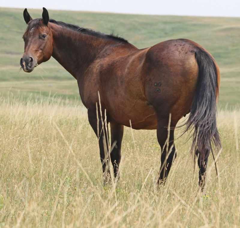 Drift Frost is a beautiful dark bay mare, with as much Driftwood as you can find these days; There are 4 grandget of Driftwood on her papers: Orphan Drift 2x, Speedy Judy, and Poco Chileta! She is the last daughter of the great mare Frost Drift (by Orphan Drift), dam of of Marty & Judy Melvin's great stallion Firewater Frost! She puts that pretty head and profile on her colts, is a good mother and easy keeper. Range mare; pasture breed. Vet checked in foal to Frosted Redwood ROM Heading, for 2026.